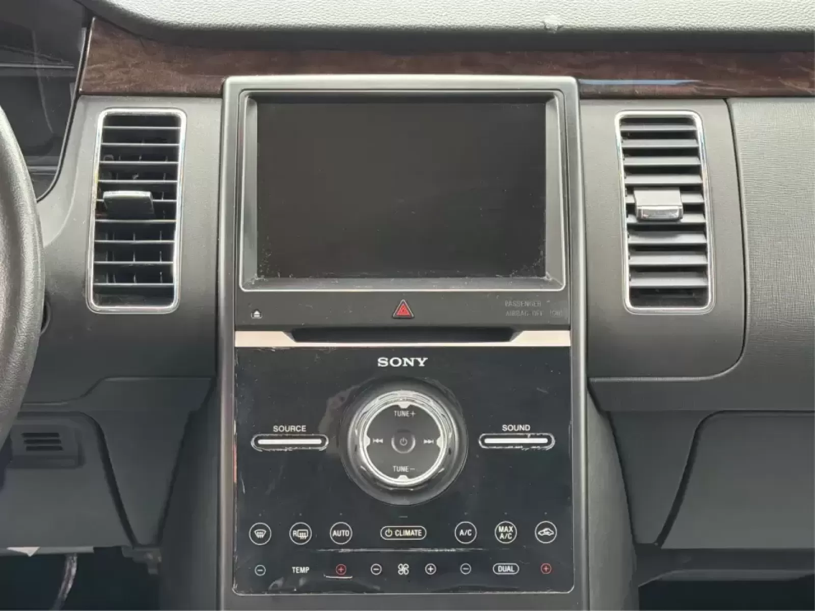 Step inside, and you'll find a luxurious cabin equipped with leather seats and genuine wood trim, offering an upscale feel for both driver and passengers. The Ford Flex features advanced technology, including a navigation aid and voice-activated telephone, ensuring you stay connected while on the go. Additionally, with options like front heated seats, a power liftgate, and climate controls for both the driver and front passenger, every ride will be comfortable, no matter the distance.