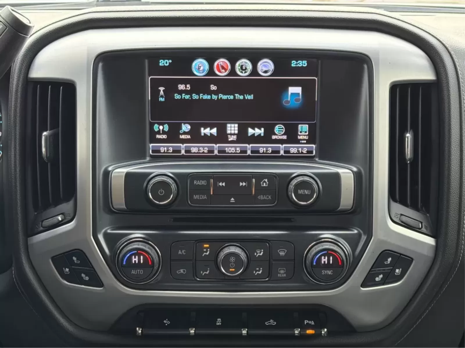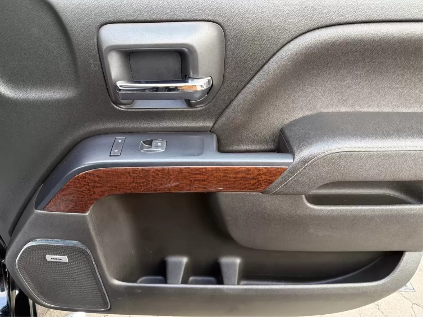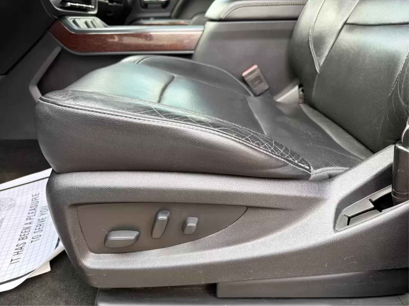 Step inside the Sierra 1500, and you'll be greeted by a spacious interior designed for comfort. The leather seats provide an upscale feel while features like heated front seats and adjustable foot pedals enhance your driving experience. The distinct wood trim and chrome accents add to the truck's elegance, ensuring that you ride in style.