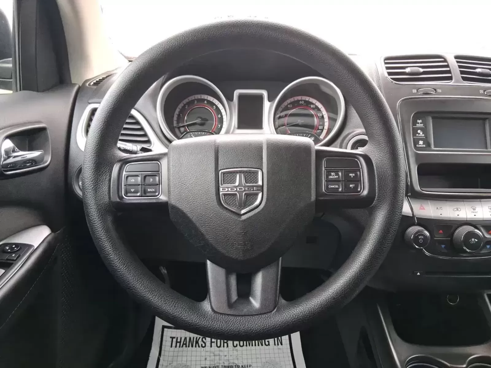 Inside, the Journey offers a comfortable leather interior, with front power lumbar support and separate climate controls for the driver and front passenger. The vehicle's second-row folding and removable seats add to its versatility, allowing you to customize your space based on your needs. For those long commutes or family road trips, amenities like AM/FM radio, a CD player, and a voice-activated telephone system ensure that you stay entertained and connected on the road.